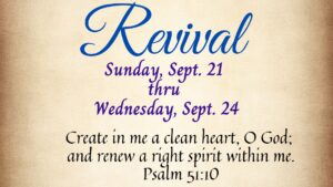 Wednesday September 22 @ 7:00PM     Rev. Allen Stanley